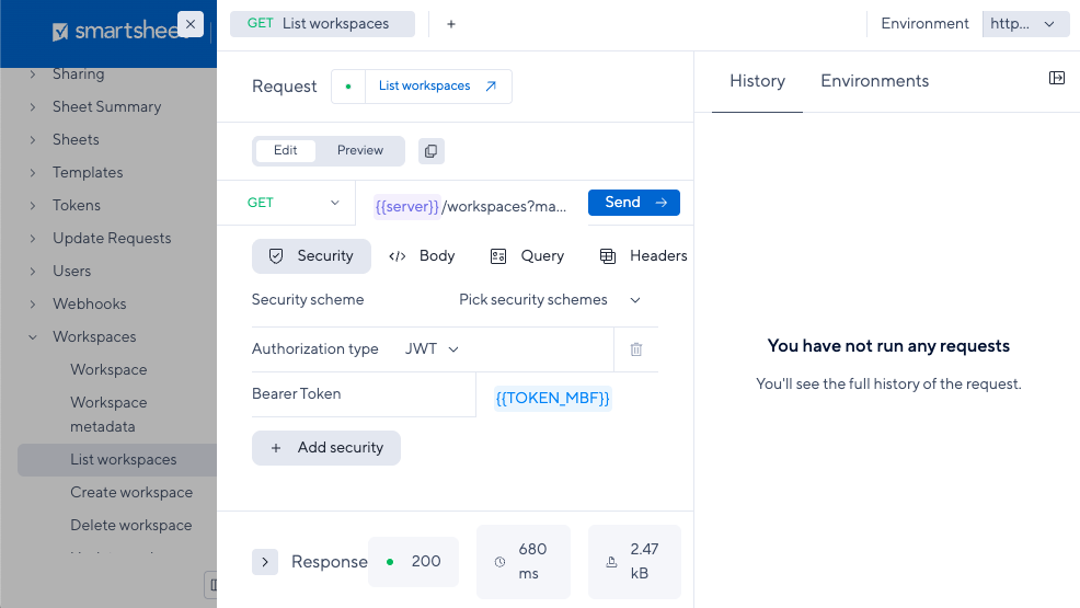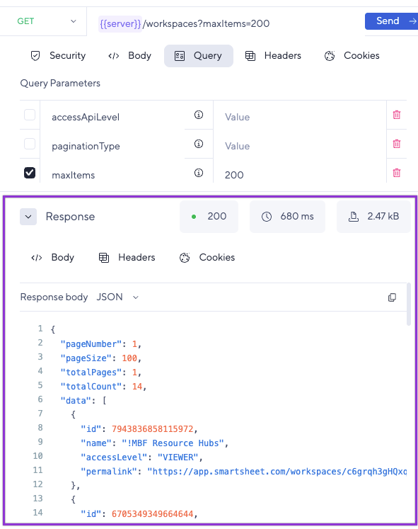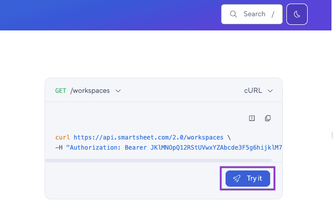 You can call other Smartsheet operations the same way, from within the Smartsheet API documentation site.
